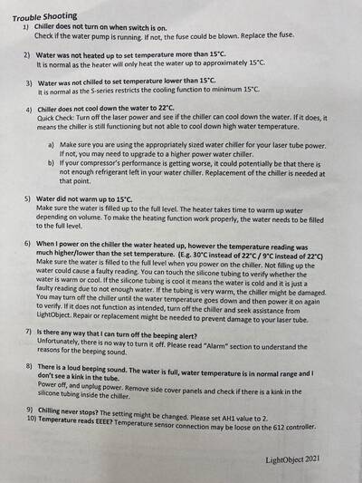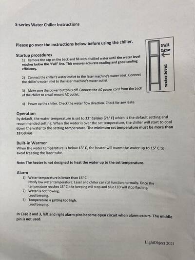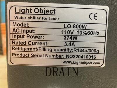VHS has purchased a Lightobject Q800 Water Chiller to cool its laser tube.