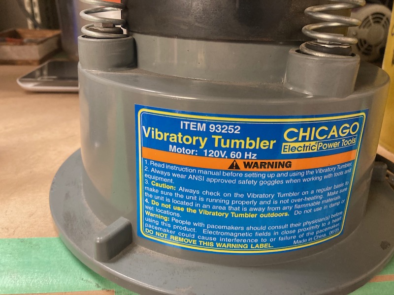 The Vibratory Tumbler was donated to VHS by Brian Howey. It can be used for knocking off burrs from metal pieces and removing rust from parts etc.